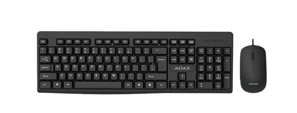 Combo teclado y mouse USB Aoas A-1016: diseño ergonómico, conectividad plug-and-play y resistencia a salpicaduras. Ideal para oficina y estudio.